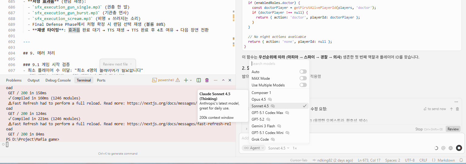 특히 게임 개발, 복잡한 비즈니스 로직, 다수의 파일을 다루는 프로젝트에서 Cursor와의 궁합이 좋은 편이다.